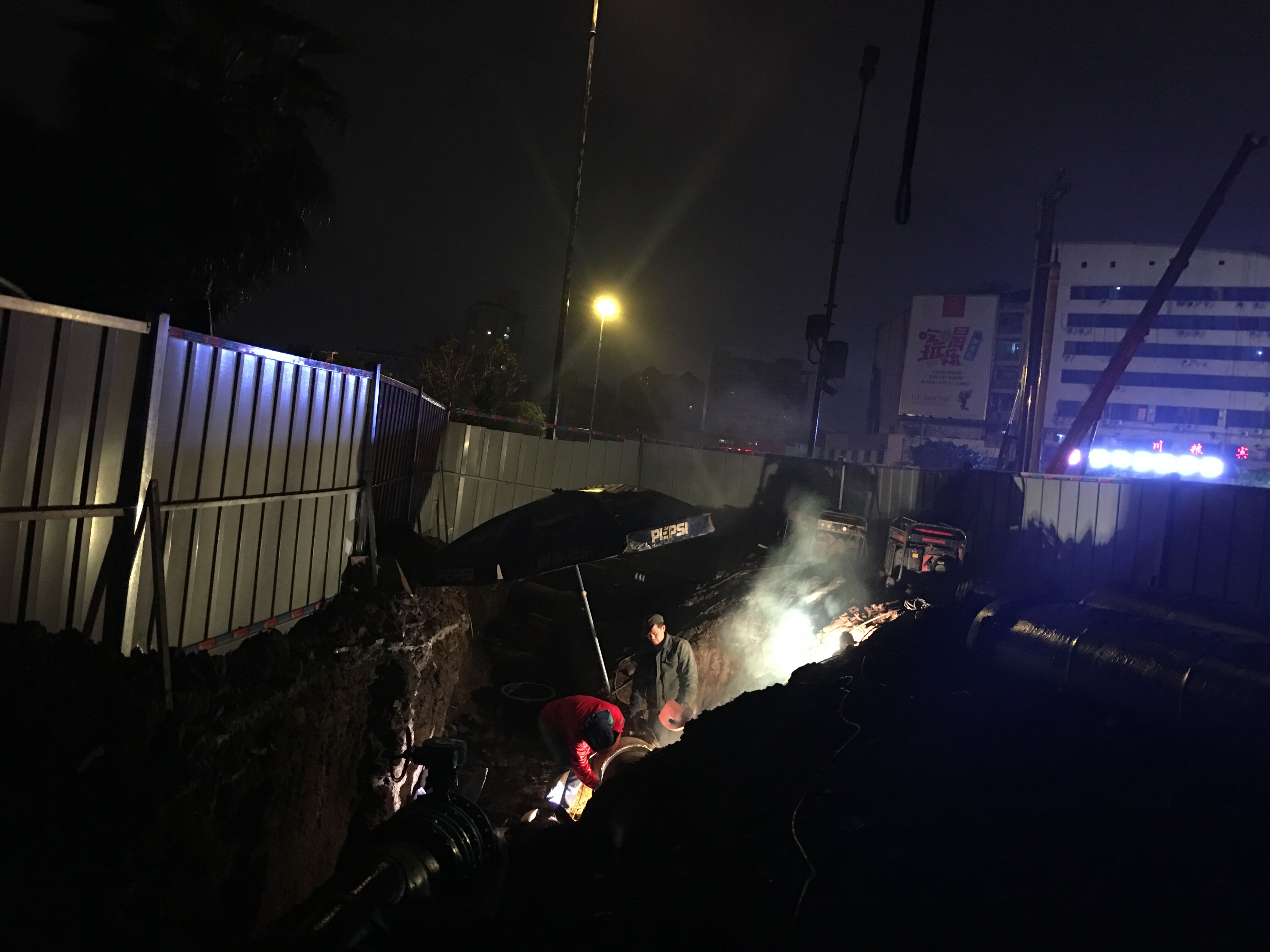 內(nèi)江市水務(wù)有限責(zé)任公司為配合西林大橋南北下穿工程順利進(jìn)行,積極組織豪盛安裝公司、工程管理部、管網(wǎng)運行部等相關(guān)部門進(jìn)行西林大橋南北橋頭下穿DN500給水管道改造。為保證附近居民白天的正常用水,我司特意把工期定在晚上和凌晨。2016年11月22日晚上11點多,陰雨綿綿,寒風(fēng)刺骨,公司黨委副書記、紀(jì)委書記、工會主席李濤帶領(lǐng)黨群工作部提上涼菜、面包和牛奶到施工現(xiàn)場慰問挑燈夜戰(zhàn)、頂風(fēng)作業(yè)的加班人員。他們不畏嚴(yán)寒、不知饑餓,只為不影響居民正常生活、保證城市安全供水埋頭苦干的水務(wù)人,讓我們不得不心生敬意。