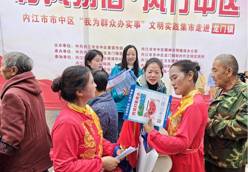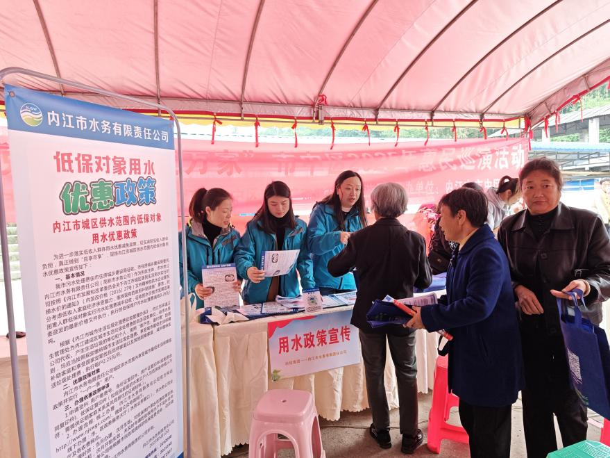 10月31日,市水務公司積極響應市中區區委宣傳部號召,走進龍門鎮沱江綜合市場,參與文明實踐集市宣傳活動,將居民用水優惠政策與便民服務精準送到群眾身邊。