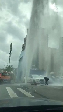 搶修人員到達(dá)現(xiàn)場(chǎng)后,發(fā)現(xiàn)消火栓已被撞斷,大量自來(lái)水噴涌而出,形成10多米高的水柱,附近道路積水嚴(yán)重,對(duì)附近學(xué)校人員的出行造成嚴(yán)重影響。搶修隊(duì)員在渾濁的閘閥井里摸索著關(guān)閉閥門,及時(shí)排除安全隱患,經(jīng)過近一個(gè)小時(shí)的搶修,11時(shí)許,完成搶修,恢復(fù)供水。